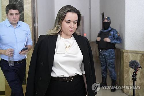 Evan Gershkovich's lawyer Maria Korchagina, foreground, walks inside the court building of "Palace of justice," in Yekaterinburg, Russia, on Friday, July 19, 2024, during the trial of Wall Street Journal reporter Evan Gershkovich's suspected spying activities. (AP Photo/Dmitri Lovetsky)