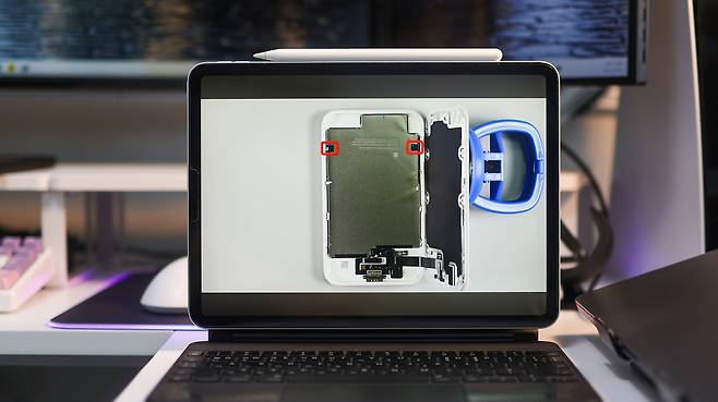 제가 찾아본 분해 내용에서는 안에 들어 있는 배터리 셀이 아이폰 17 에어와 똑같다고 했습니다. 용량 자체는 충분했다는 이야기죠. 하지만 무선 충전 방식이라 전기가 중간에 새어버리면 실제 충전율은 65% 정도에 그쳤던 거죠.