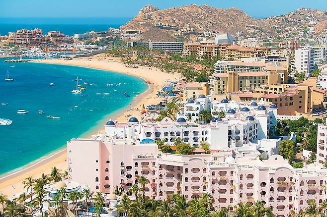 로스카보스에는 해안을 따라 수많은 고급 리조트가 자리 잡고 있습니다.