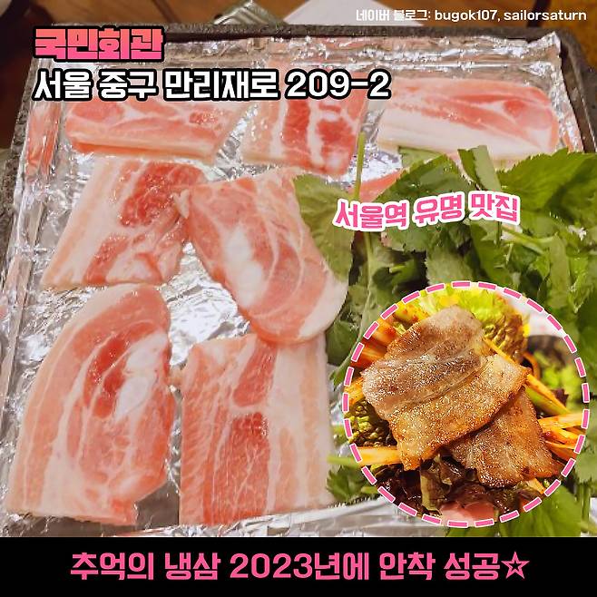 첫 번째는 레트로 컨셉으로 촬영한 날, 런닝맨 멤버들이 다녀간 냉삼(=냉동삼겹살) 맛집인 <국민회관>이에요. 국민회관 내부는 레트로 느낌을 낸 인테리어가 아니라 그냥 레☆트☆로 그 자체라고 해요. 직장인들이 애정하는 맛집인 만큼 평일 저녁에도 웨이팅이 있다고 하니 가능하다면 6시 이전에 가시는 것을 추천드려요.