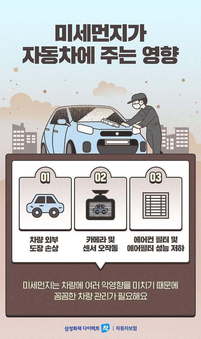외부 도장에 영향을 주는 것은 물론, 카메라 및 각종 센서에 오작동을 일으킬 수도 있습니다. 미세먼지가 차량 전면 유리와 각종 센서에 쌓이면 카메라 및 센서 인식에 오류가 생길 가능성이 높습니다.
