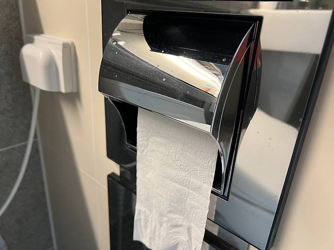 하지만 휴지를 앞으로 걸면 휴지가 공기 중에 노출돼 건조 상태 유지가 훨씬 수월해집니다.