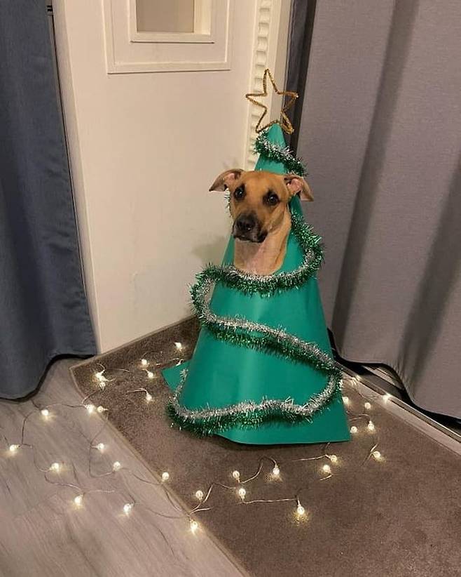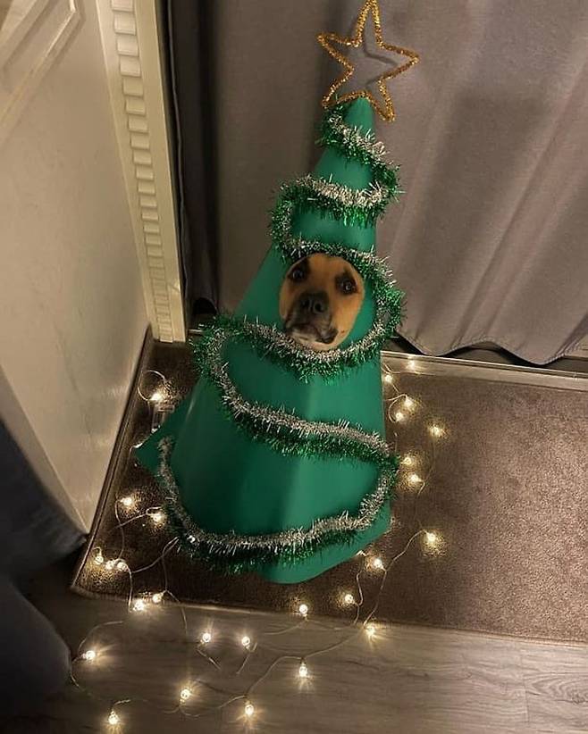 크리스마스와 연말연시를 앞두고 깜짝 크리스마스 트리로 변신한 강아지가 있습니다. 집사가 1년에 한번 뿐인 크리스마스를 제대로 보내기 위해 잊지 못할 이벤트를 준비한 것.