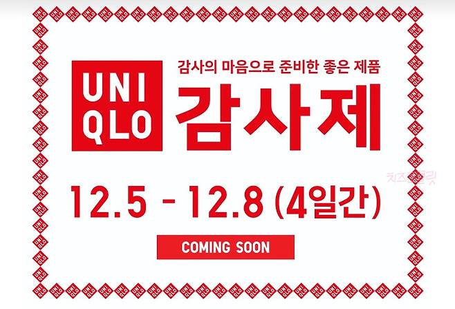 유니클로 감사제 세일은 12월 5일 금요일부터 8일 월요일까지