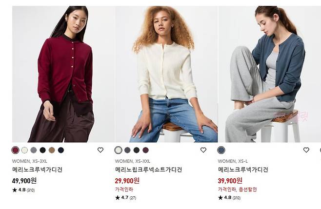유니클로 메리노울 가디건을 구매하면