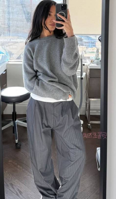 이런 느낌으로 캐시미어 니트 코디하고 싶어요.