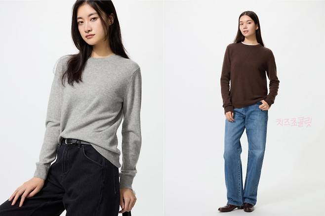 유니클로 캐시미어 니트는 여유로운 실루엣으로