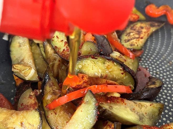 가지는 찜으로 조리하면 수분이 많이 생겨 쉽게 흐물 해지고, 금방 물이 생겨 보관이 어렵지만, 볶으면 수분을 날려주기 때문에 물이 잘 생기지 않고 하루 이틀 보관도 가능합니다.