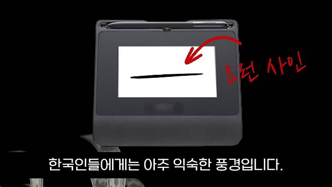 세 번째, 한국의 인프라가 정말 잘 되어 있다는 증거는 대부분의 사람이 카드를 사용한다는 것입니다. 한국에서는 외출할 때 카드 한 장만 들고 나가도 대중교통에서부터 먹거리, 쇼핑 등 모두 해결할 수 있는데요. 한국에서는 카드로 5만원 이상 결제할 때 서명을 해야 하는데, 그 서명을 카드 주인이 직접 하는 게 아니라 판매자가 해주는 경우... 한국인들에게는 아주 익숙한 풍경입니다.