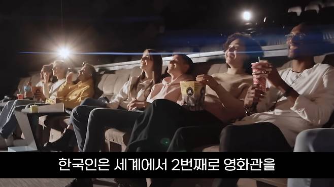 두 번째, '한국인이 좋아하는 취미' 6위는 '영화 감상'이라고 하는데요. 한국인은 세계에서 두 번째로 영화관을 많이 찾는다고 합니다. 그렇다 보니 한국은 영화관이 굉장히 잘 되어 있는데요. 해외에 나가서 그 나라의 극장에 가는 일은 잘 없지만, 한국은 워낙 영화관 시설이 잘 되어 있고 특이한 테마의 영화관들이 많다 보니 은근히 한국의 영화관을 찾는 외국인들이 많다고 합니다. 영화관을 찾는 외국인은 주로 4DX를 관람하시러 오시는 분들이 많았는데요.