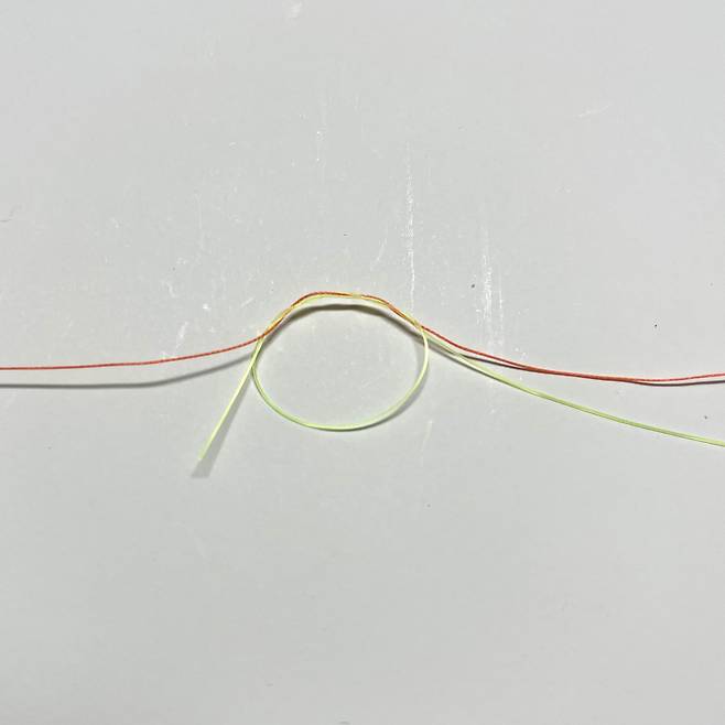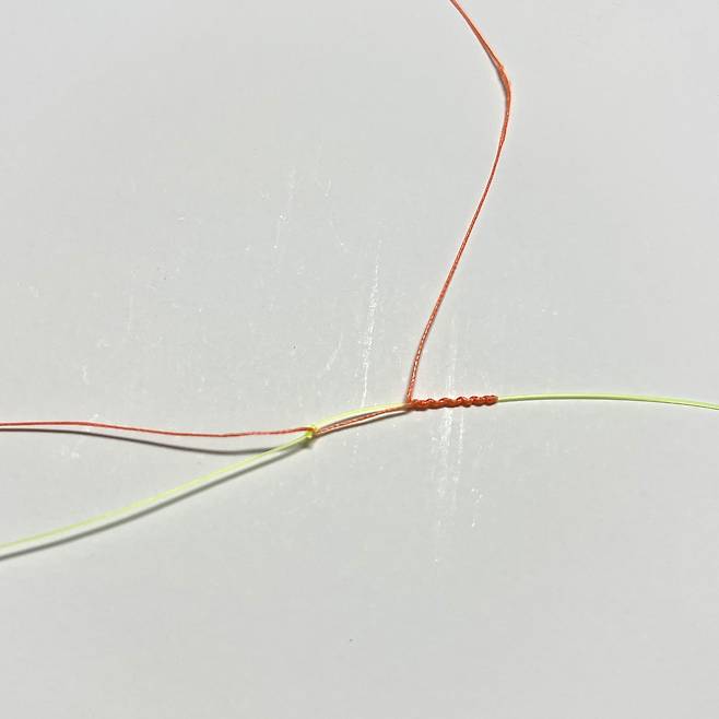 오른쪽으로 잡아당긴 후 원래 합사 원줄과