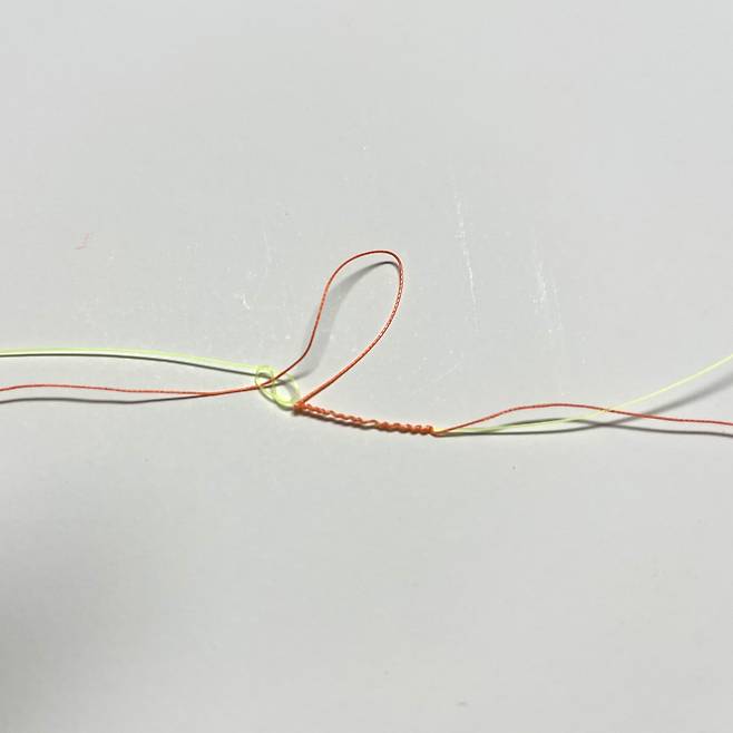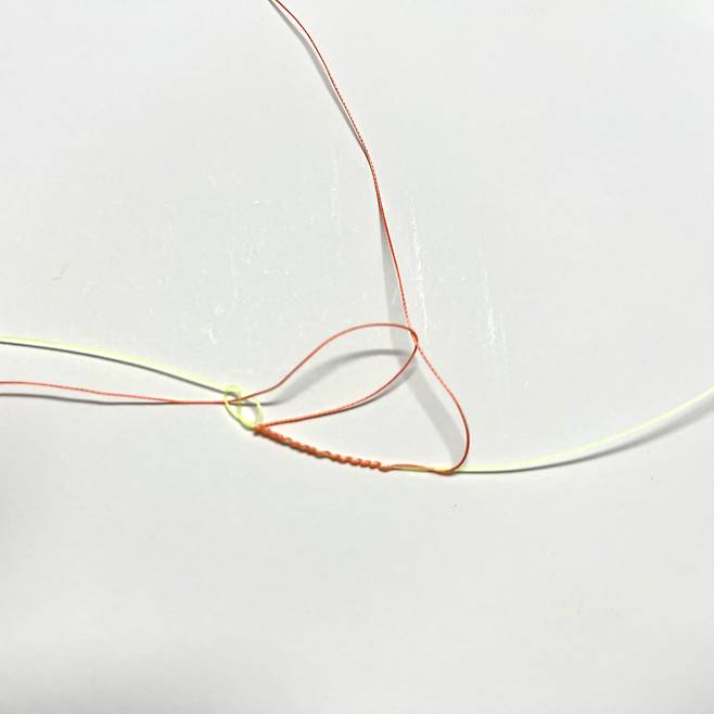 오른쪽으로 잡아당긴 후 원래 합사 원줄과