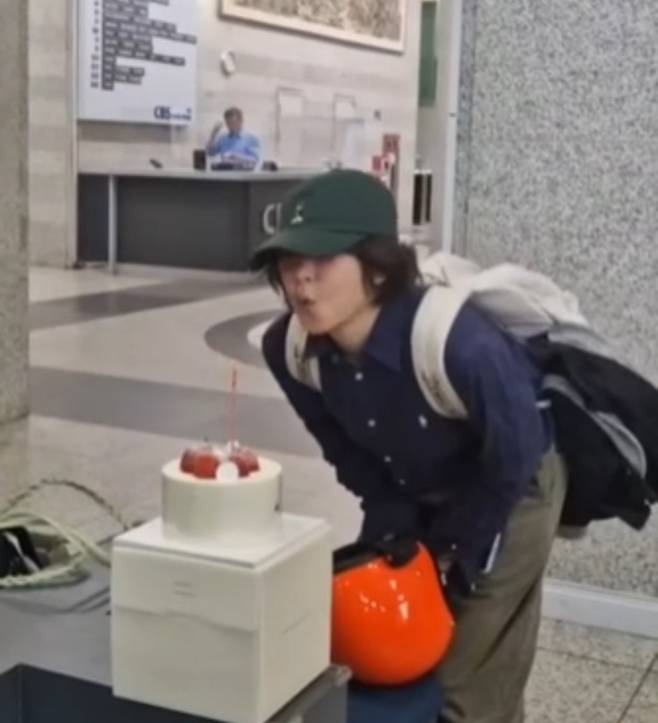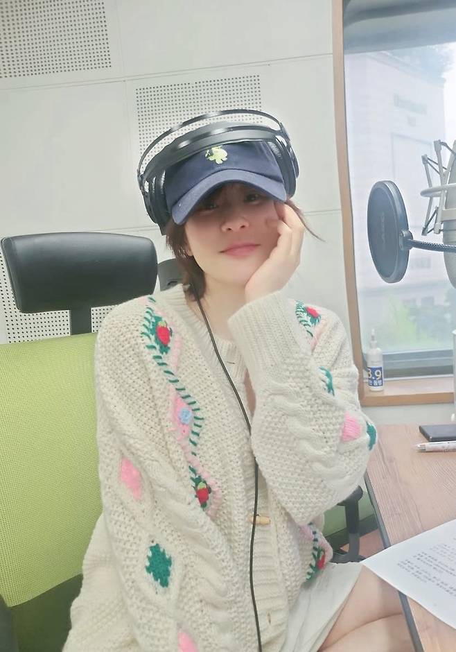 도톰한 꽈배기 짜임과 파스텔 자수 디테일이 더해진 크림색 카디건은 빈티지하면서도 감성적인 스타일을 완성했고, 내추럴한 민낯 분위기와 캡 모자로 편안한 매력을 배가시켰습니다.