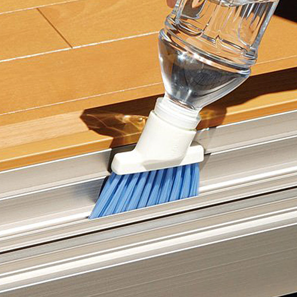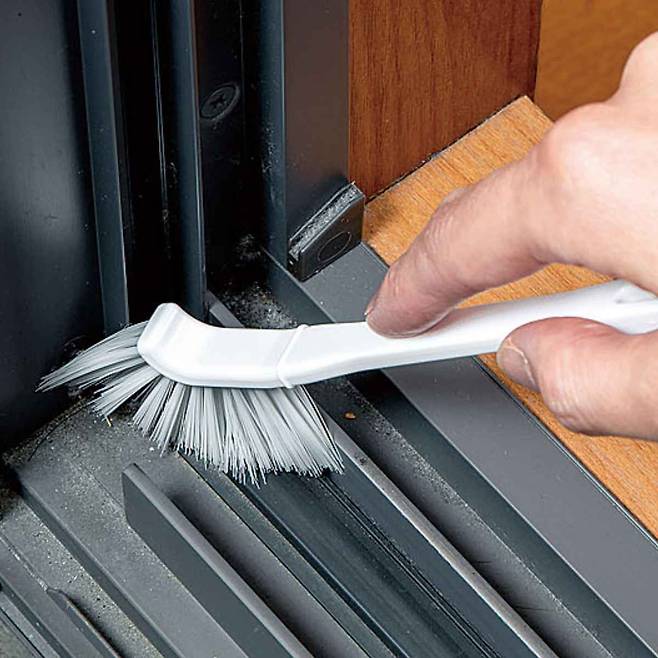 창틀 구석 방향으로 움직이지 말고, 먼지가 빠지는 방향(배수구 쪽)으로 쓸어낸다.