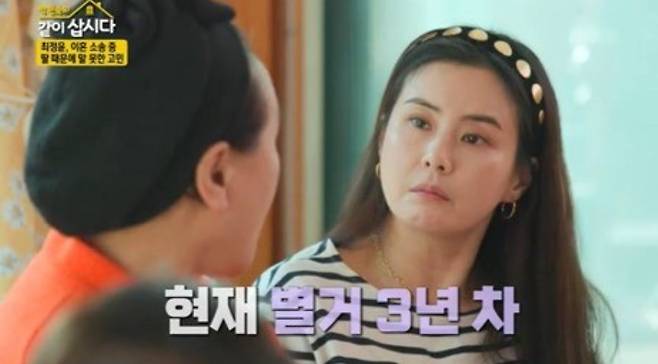 최정윤은 KBS2 '같이 삽시다'를 통해 "아이만 없었다면 진작 이혼했을 것"이라며 "아이 때문에 하루에도 열두 번씩 마음이 바뀐다"고 고백했다.