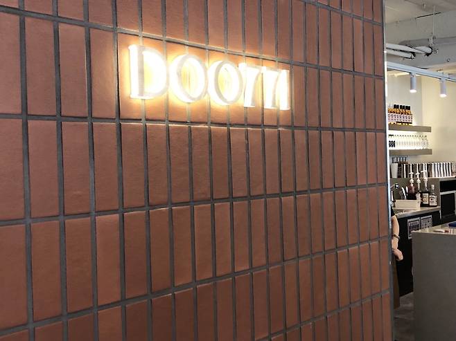 건물 2층에 자리한 두끼 강남 매장은 이렇게 로고도 달랐습니다. 바로 "DOO771"인데요. 영어발음인 '두'에 숫자 771을 한글로 읽은 '끼'가 합해져 '두끼'가 됩니다.