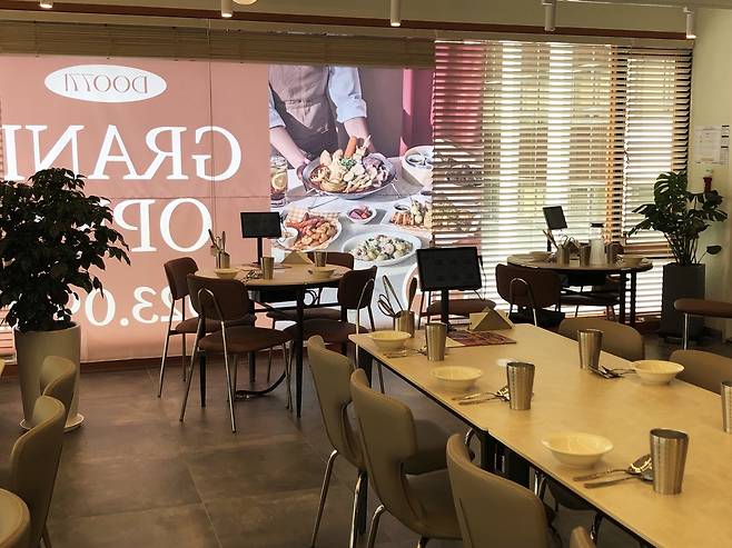 안에 들어서자 일반 두끼 매장과는 다른 모습이 나왔습니다. 마치 강남 브런치가게에 들린 듯한 고급스럽고 깔끔한 인테리어.