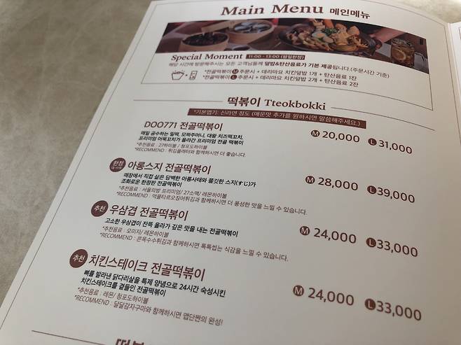 아롱사태, 우삼겹, 치킨스테이크가 들어간 떡볶이까지 다양합니다.