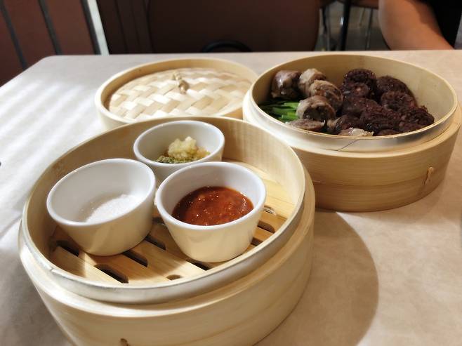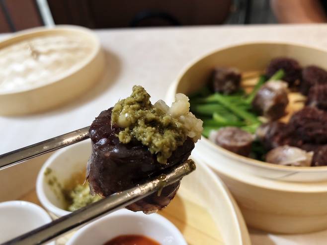 강남 매장에서는 순대 메뉴도 인상적이었어요. 고급스럽게 등장한 순대. 그리고 순대를 찍어먹는 새로운 디핑소스 3가지.
