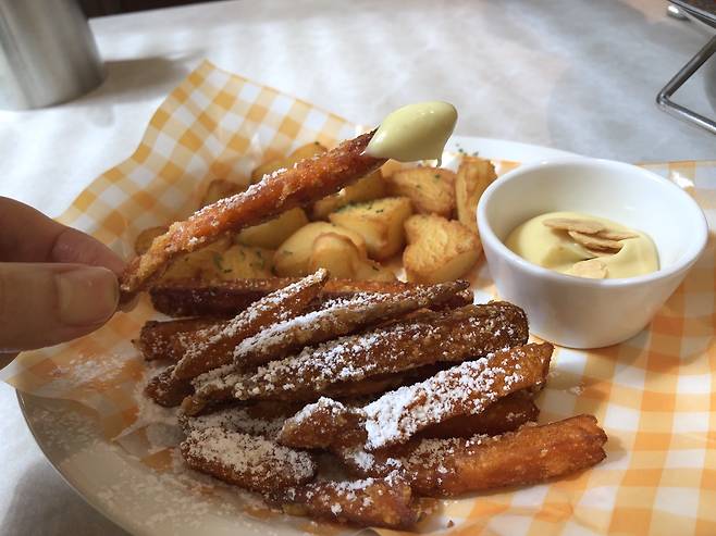 고구마를 좋아하는 저는 고구마튀김에 손이 더 자주 갔습니다. 달콤바삭한 고구마튀김~