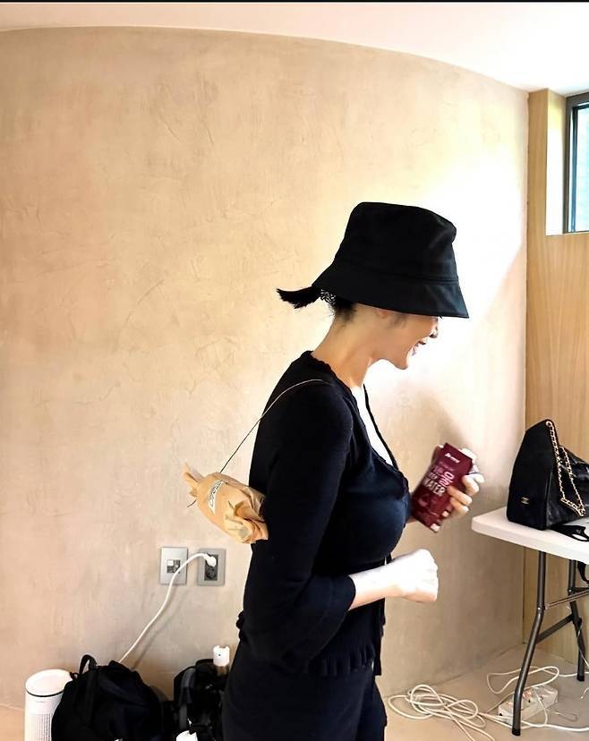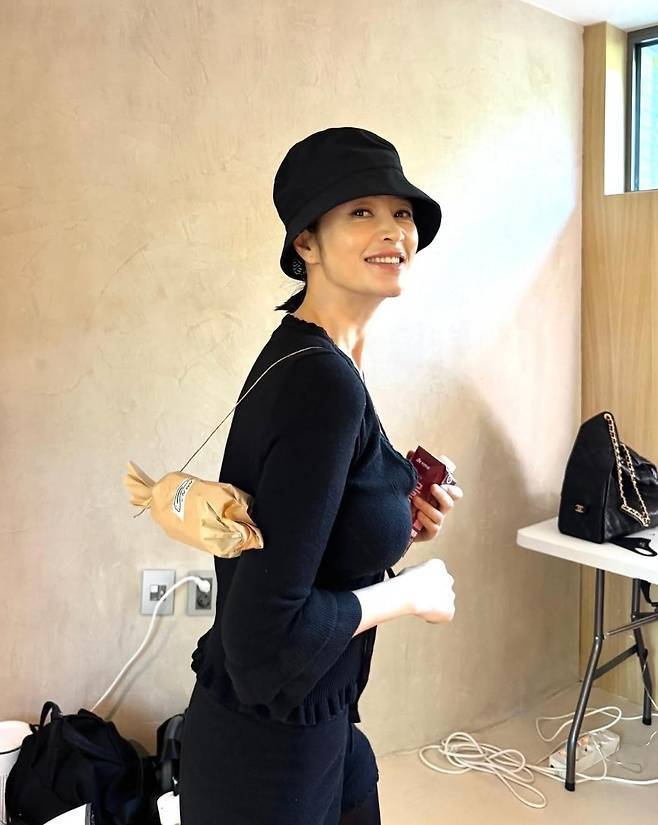 배우 김혜수가 최근 인스타그램에 "안에 샌드위치가 들어있는 나의 새로운 가방~~✨"이라는 글과 함께 여러 장의 사진을 게재했습니다.