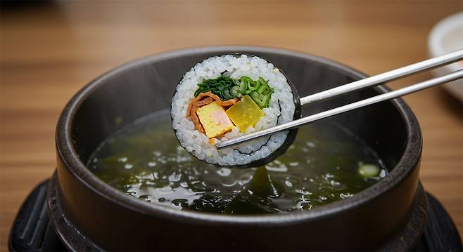김밥이 너무 딱딱해서 먹기 힘들다면, 따뜻한 국물과 함께 먹는 방법도 있다. 미역국이나 된장국 같은 국물에 김밥을 살짝 담가 먹으면, 밥과 김이 부드러워지고, 국물과 속 재료가 잘 맞아 더욱 맛있게 즐길 수 있다.