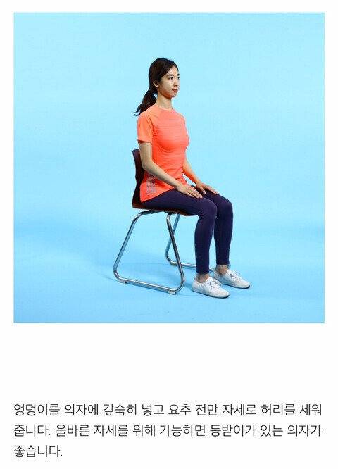 ✔ 앉을 때 허리를 곧게 펴고 등받이에 기대기