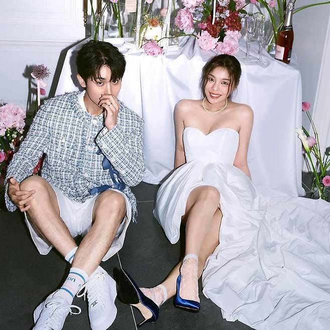 웨딩 화보를 공개하며
