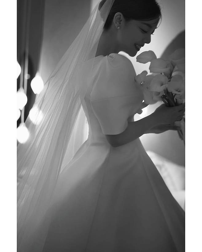 풍성한 볼륨의 화이트 웨딩 드레스를