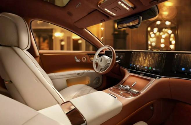 실내는 3개의 디스플레이와 70인치 AI 기반 헤드업 디스플레이를 포함한 최첨단 기술로 무장되어 있습니다. 또한, 나파 가죽, 천연 원목, 크리스탈 장식 등 고급 소재를 사용하여 럭셔리한 분위기를 연출합니다. 뒷좌석은 리클라이닝 기능, 전동 레그레스트, 접이식 테이블, 냉장고, 별빛 천장 조명 등 다양한 편의 기능을 갖추고 있습니다.