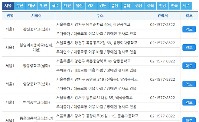 - 지역별 시험장 수 제한