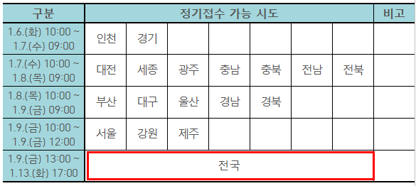 - 정기 접수 종료 후 별도 공지