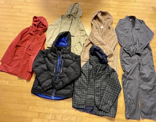 일용언니 에디터는 이렇게 6벌을 9만5080원에 득템했어요. 체크 점퍼는 2만원, 빨간색 트렌치 반코트는 9000원, 워크수트와 페이크퍼 무스탕은 무게를 달아서 총 3만원, 아노락은 2만5000원, 한겨울패딩이 9000원입니다.