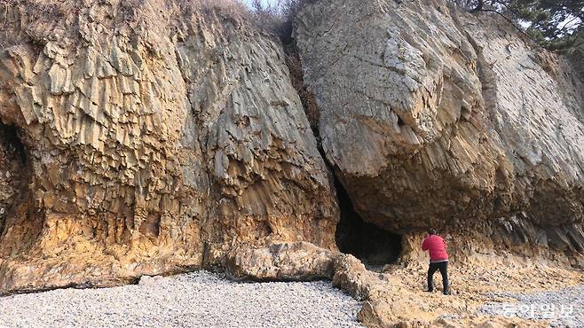 두 강의 깎아지른 절벽에는 파도가 파낸 깊고 넓은 동굴이 곳곳에 보인다. 누구는 예전에 이런 동혈(洞穴)에서 선비들이 소박한 술상을 차려 놓고 시를 읊었다고도 하고, 누구는 용왕에게 치성을 올렸다고도 하는데, 알 수 없다. 그런데 이런 자연 조화를 내변산에서 다시 볼지는 몰랐다.