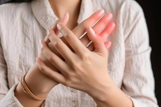 관절이 붓거나 열감이 느껴지기도 하는데, 이는 염증 반응으로 인한 것이다. 염증이 발생하면 뇌로 통증 신호가 전달되면서 해당 부위 관절에 통증이 발생한다. 이때 손 전체가 뻐근하게 느껴질 수 있는데, 손가락 관절을 하나씩 만져보면 어느 관절에 문제가 생겼는지를 확인할 수 있다.