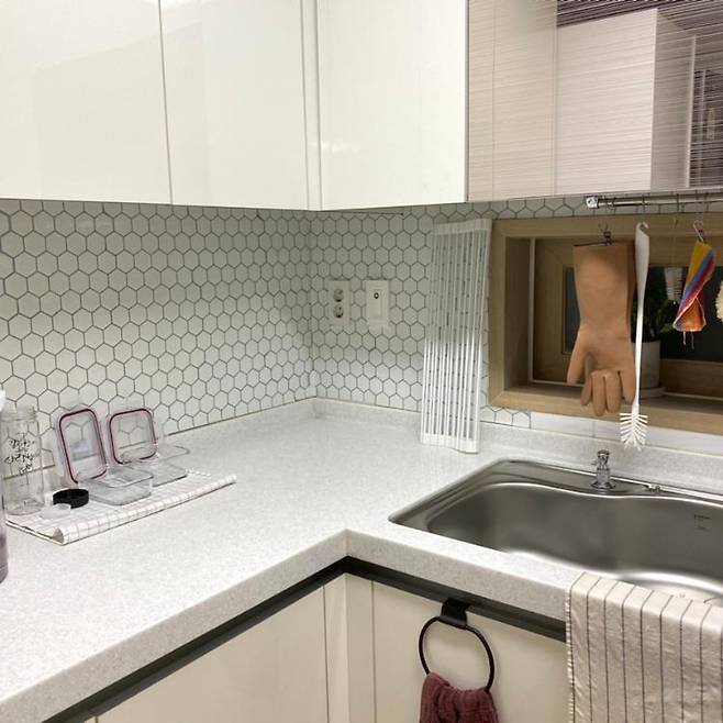 싱크대 옆에도 큰 식기 건조대보다는 실리콘 롤이나 작은 건조대를 사용하고 있어요.
