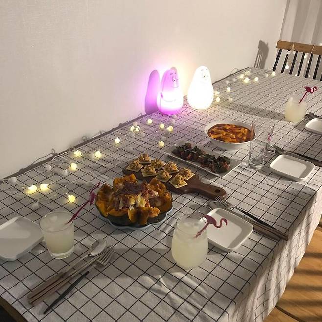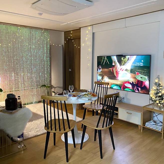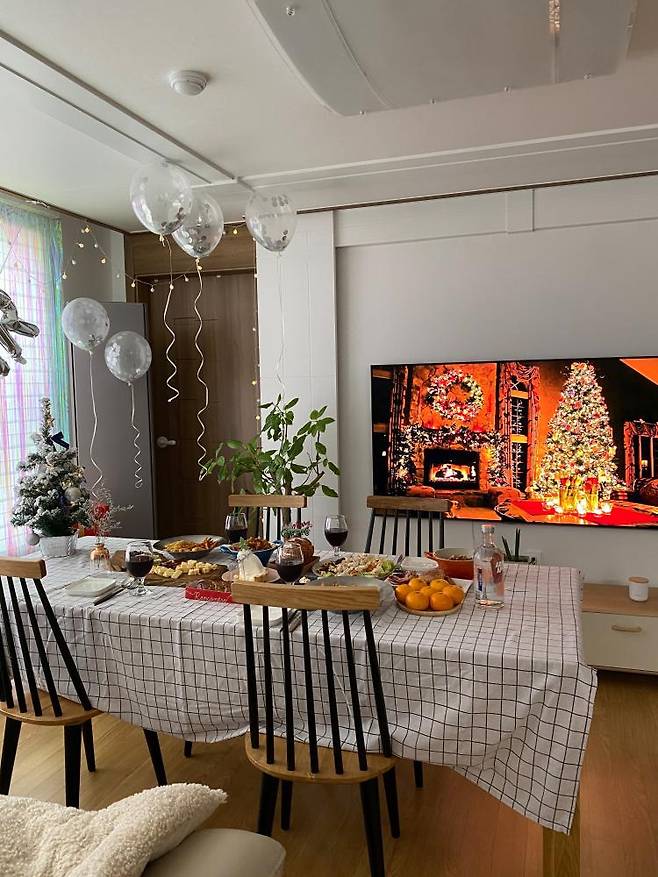친구들과 조촐하게 파티도 하고.. 거실에서 많은 것을 하고 있습니다