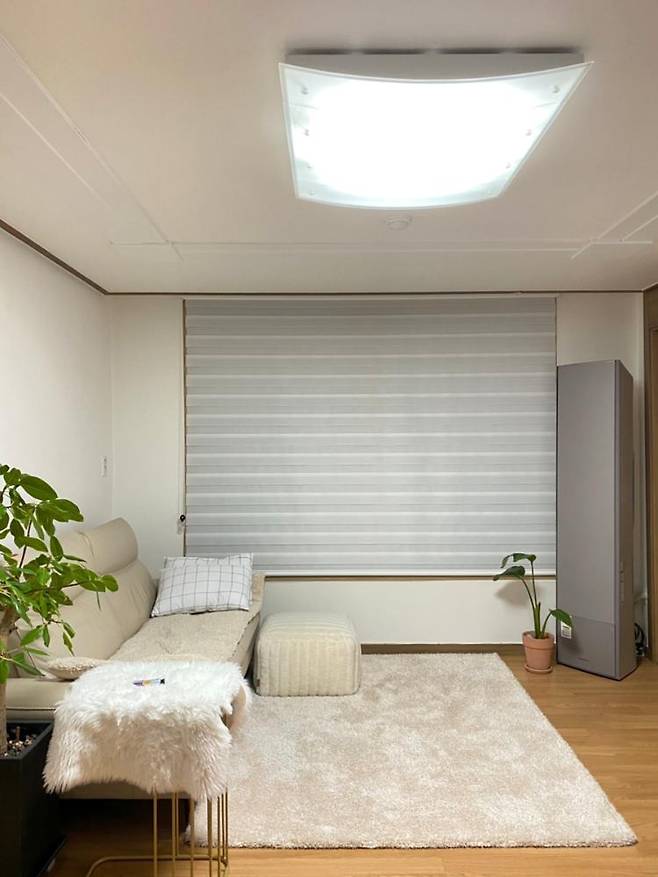 현관문을 열면 바로 보이는 거실이기 때문에 최대한 깔끔하게 보이려고 최소한의 물건만 두었습니다.