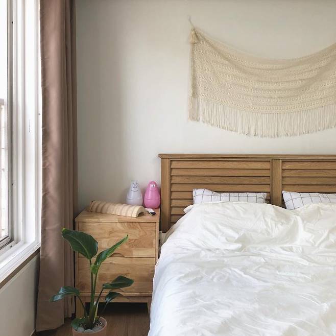 최대한 깔끔하게 침대와 협탁만 놓는 식으로 가구배치를 최소한으로 하고 싶었습니다.