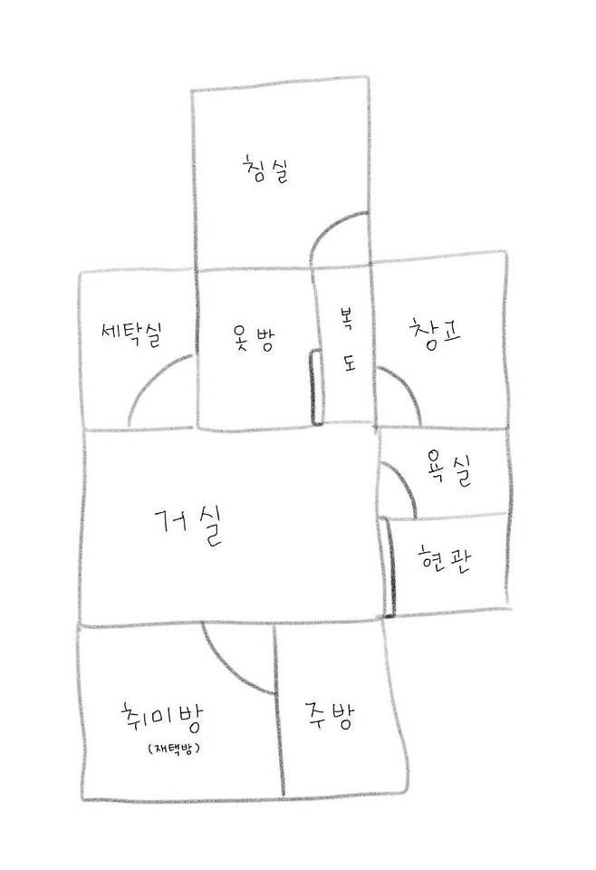 제공되는 도면이 따로 없어 간단하게 그려 보았어요.공급면적은 약 23평 / 실평수는 약 19평 정도 됩니다.평수는 작지만 방은 3개로 되어있어서 효율적으로 꾸며 보았습니다.