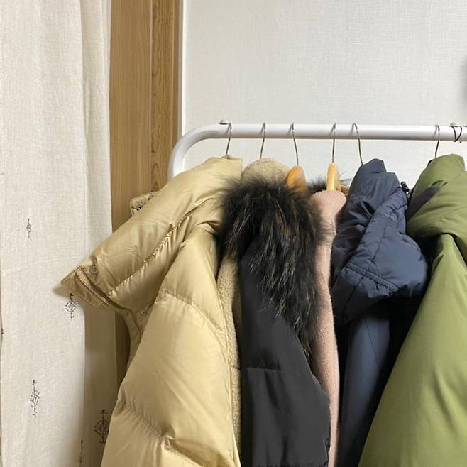 기존에 쓰던 장들을 그대로 가져와서 ㄴ자로 배치하고, 반대쪽 남은 벽에는 스타일러, 서랍장(+화장대로도 쓰임), 긴 옷을 걸 행거 등을 따닥따닥 붙여서 겨우 공간을 완성하였습니다.