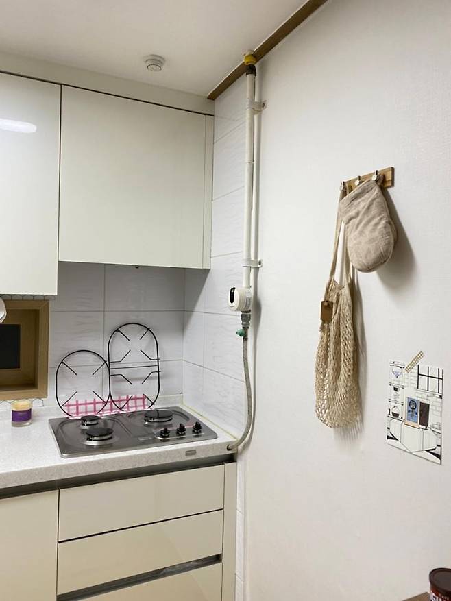 주방도 작지만 처음 이사 왔을 때 넓은 개수대와 3구 가스레인지가 설치되어 있어서 행복했습니다.