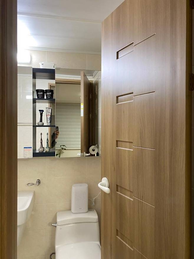 사실 딱히 둘 곳이 없어서 애매한 자리에 위치해 있는데 집이 더 좁아 보일 줄 알았지만 화이트 색상이다 보니 엄청 거슬리지는 않습니다.