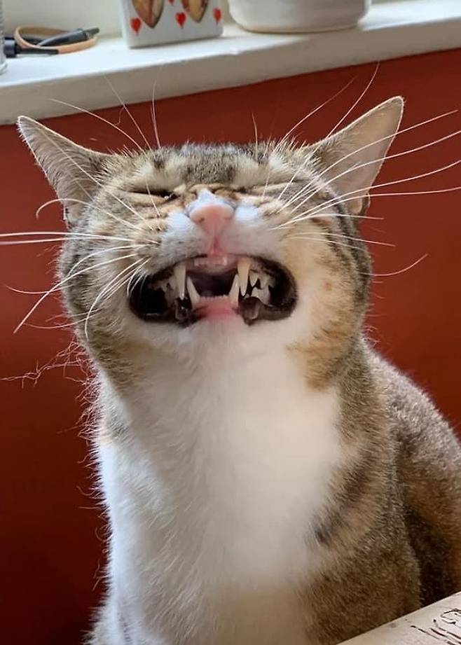 도대체 녀석은 왜 이런 표정을 지어 보였을까요. 팬 서비스하는 듯 인심 썼다며 입 벌리며 웃어 보이는 고양이 보니 웃음만 나올 따름입니다.