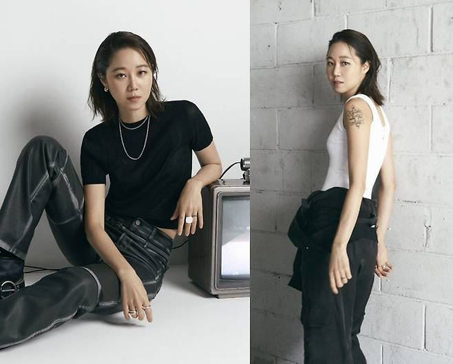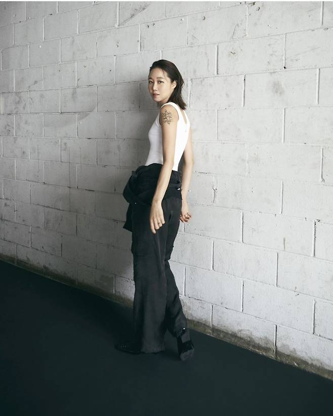 또 공효진은 화이트 슬리브리스 탑과 넓은 통의 블랙 카고 팬츠를 매치해 간결하면서도 세련된 분위기를 연출했습니다.