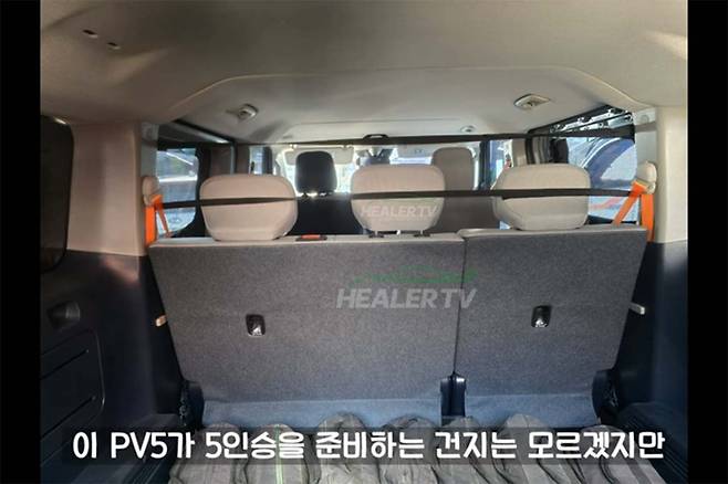 신차 유튜브 채널 ‘힐러TV’가 공개한 PV5 테스트카는 승객 탑승에 최적화된 미니밴 모델 PV5 패신저다. 운전석과 후석이 분리된 카고 모델과 달리 운전석과 연결된 후석 공간과 승객석이 적용된 것을 확인할 수 있다.