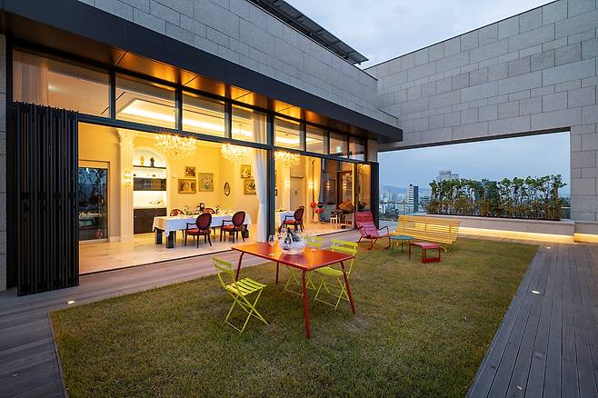 청담동 도심 한가운데 건물 10층에 위치한 VIP 공간인 청담나인 루프탑은 한 타임에 오직 한 팀에게만 오픈하는 다이닝 룸과 실외 정원, 하이엔드 음향 기기와 엔터테인먼트 시설을 갖춘 실내 공간으로 구성돼 있다. 층고가 높은 다이닝 룸은 고급스러운 크리스털 샹들리에와 따스한 느낌의 인테리어로 꾸며 5성급 호텔 레스토랑 못지않은 분위기를 자랑한다. 도심 속에서 푸릇푸릇한 자연을 느낄 수 있는 시티 뷰 정원은 통유리 폴딩 도어로 다이닝 룸과 구분된다. 실내와 실외를 자유롭게 오갈 수 있는 데다 날씨에 구애받지 않고 모임을 즐길 수 있다는 점이 매력이다.
