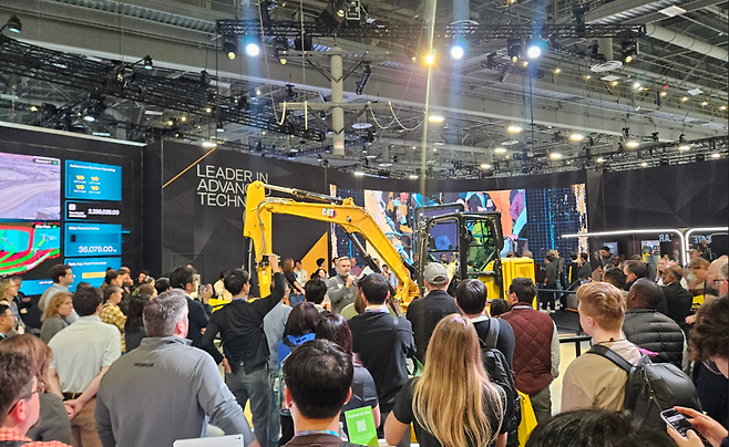 세계 최대 건설장비 업체 캐터필러는 생성형 AI 기반의 '캣(CAT) AI 어시스턴트'를 공개하며 맞불을 놨다. 미래지향적 콘셉트를 강조한 두산밥캣과 달리 캐터필러는 현실의 공사장을 무대 위로 그대로 옮겨오는 정공법을 택했다. 당장 오늘 현장에서 벌어지는 난제에 집중하겠다는 전략이다.