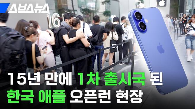 아이폰16 시리즈를 기다리는 인파로 북적였습니다.