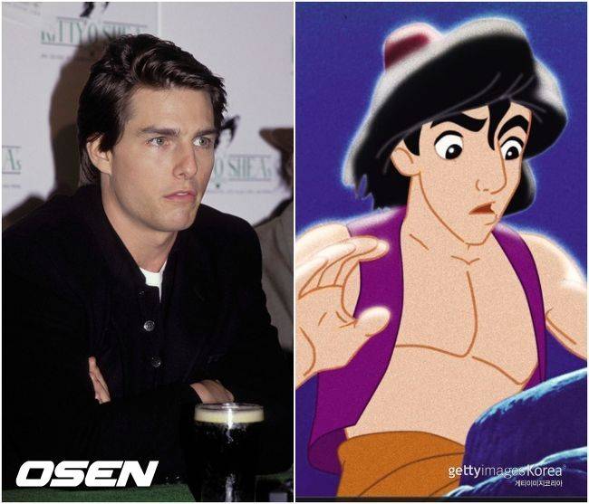 톰 크루즈는 '알라딘'의 캐릭터에 영감을 줬다. 알라딘은 원래 디자인이 너무 '귀엽다'는 이유로 보류당한 후 톰 크루즈에게 영감을 받은 것.